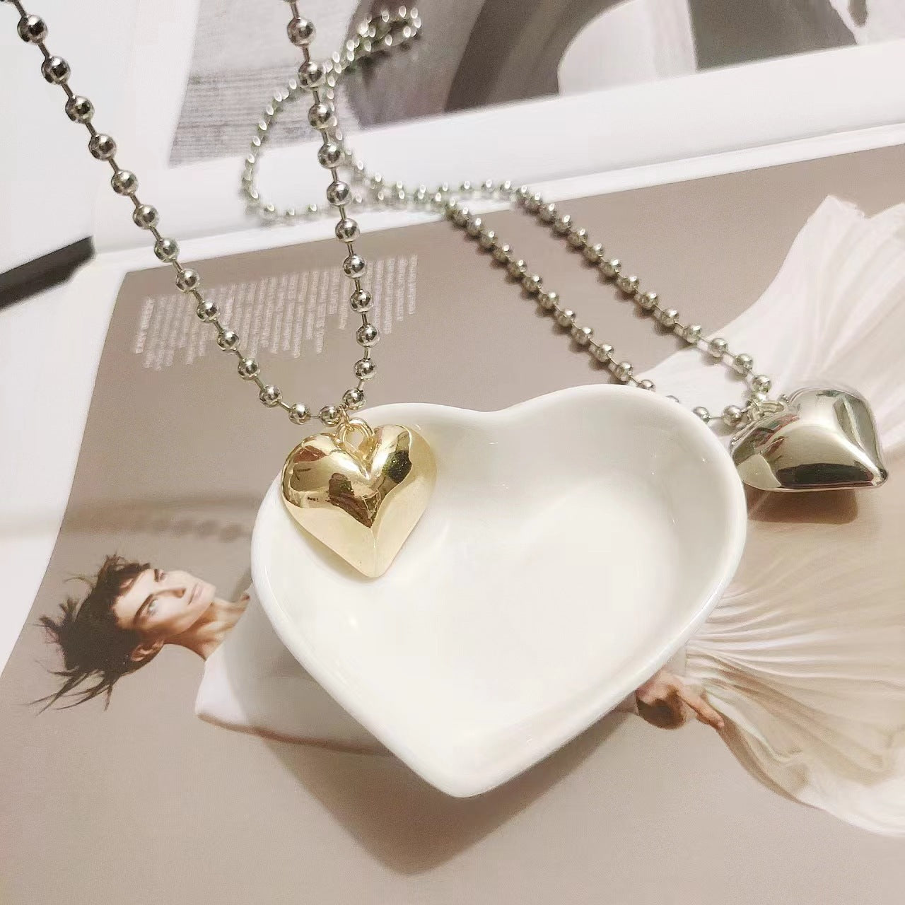 Beaded Chain Heart Pendant Necklace
