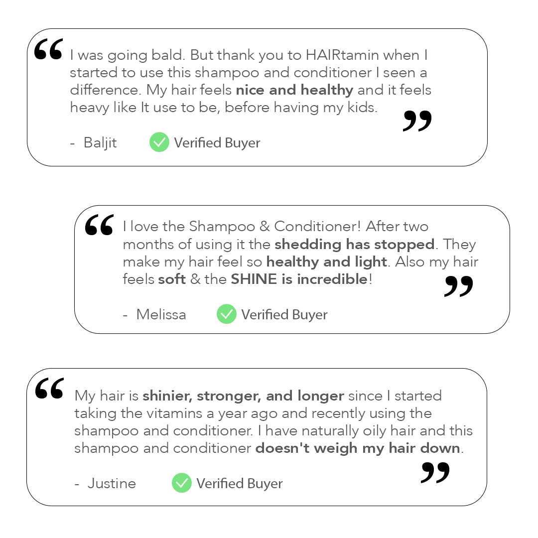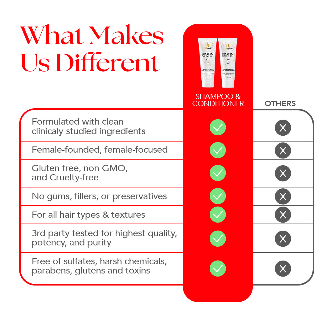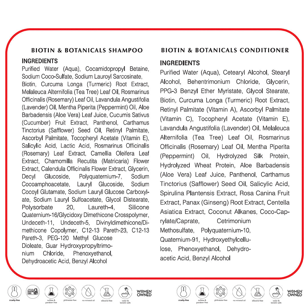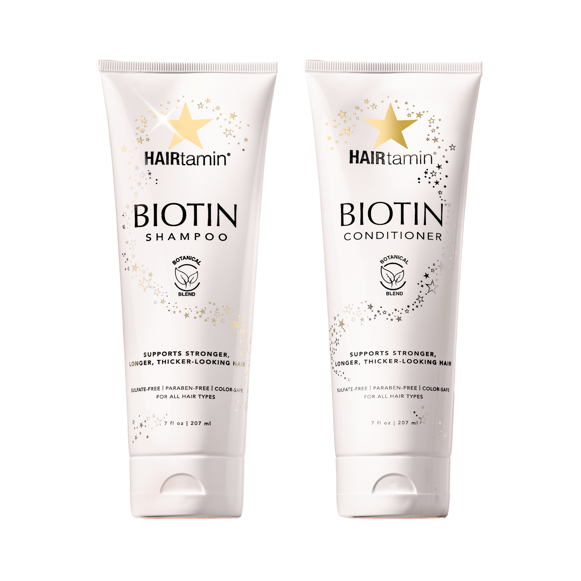 Infused with hair-beautifying Biotin and Botanicals, this gentle, yet powerful hair care duo works synergistically to help address hair and thinning, while protecting from everyday damage. A gentle, daily formula that helps clean and nourish your hair and scalp to promote stronger, shinier, and thicker-looking hair. Use it with your HAIRtamin® supplement regimen for a complete inner/outer approach to hair wellness.