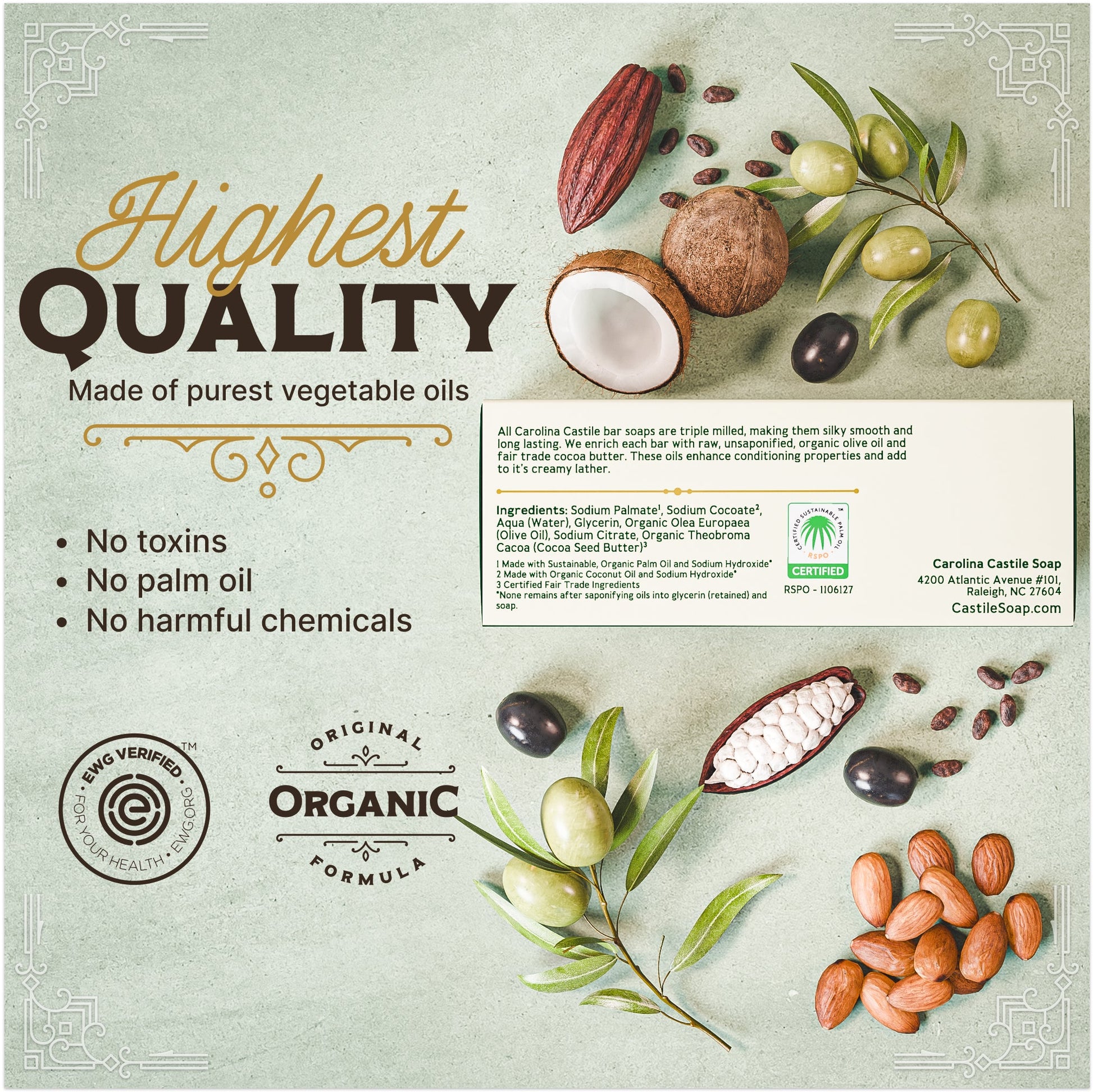 - Organic & EWG Verified: Enjoy peace of mind with a soap crafted from organic, responsibly sourced ingredients and verified to meet the highest safety standards.