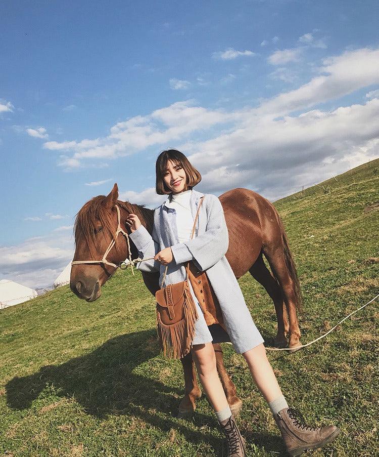 Trendy Dakota Tasseled Boho Leather Bag - Large Tassel Shoulder Bag
