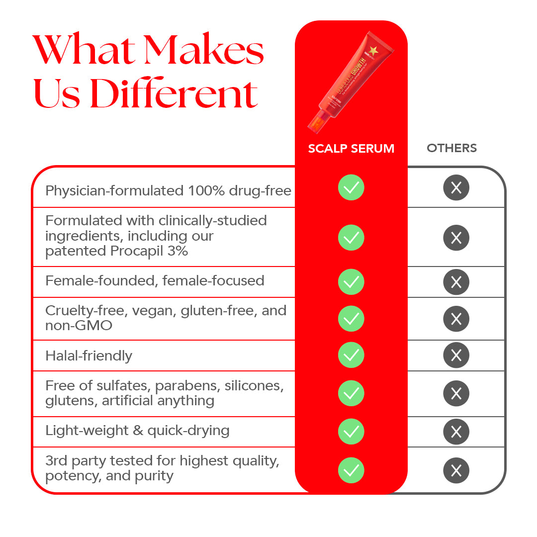 HAIRtamin® Gorgeous Growth Scalp Serum is a physician-formulated, clean, 100% drug-free topical serum with essential herbs & antioxidants plus our patented Growth Complex, PROCAPIL® 3% to help visibly increase thicker looking hair.