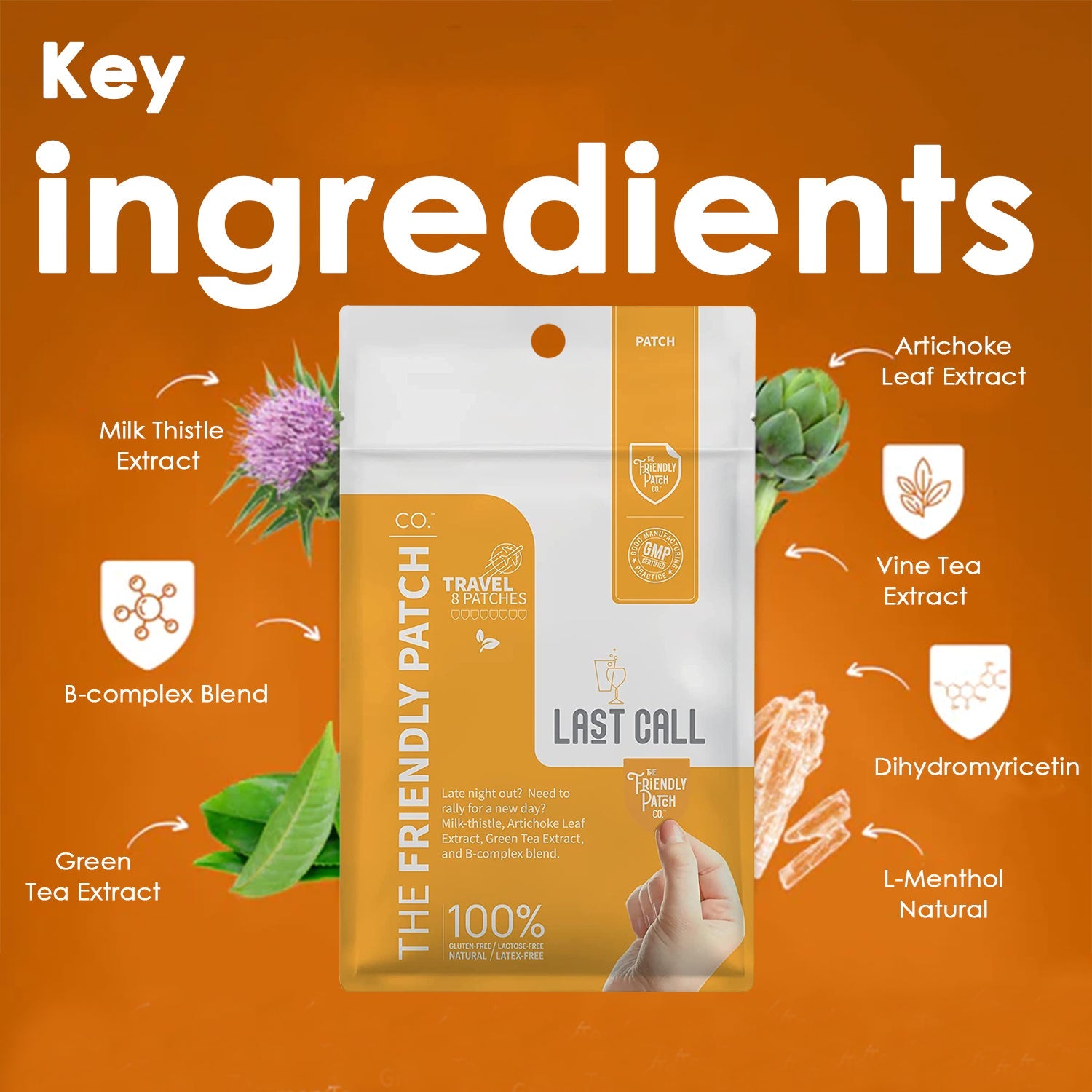 The key ingredient in the Last Call Patch is Vine Tea. This natural plant-powered patch is a good patch to use in the morning after a late night.