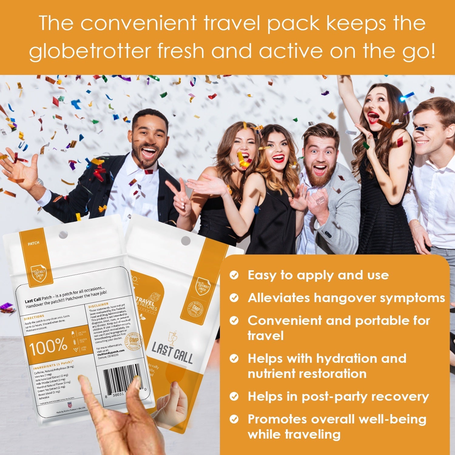 The Last Call Patch from The Friendly Patch is an innovative after-party patch designed to help deal with a night out on the town. This powerful patch contains a unique blend of natural ingredients that work together to support your body after a late night out.