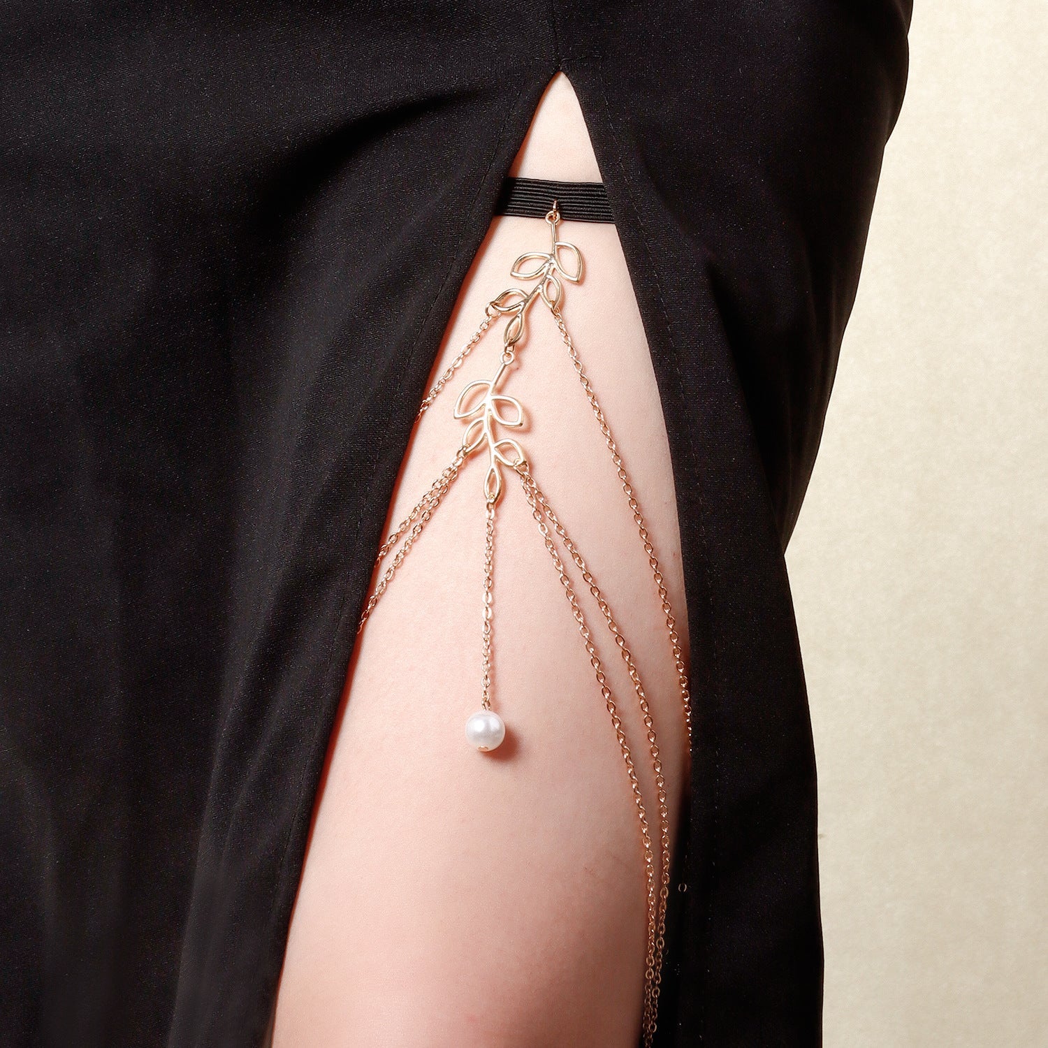 Multi Layer Tassel Pearl Clip Bead Leg Chain