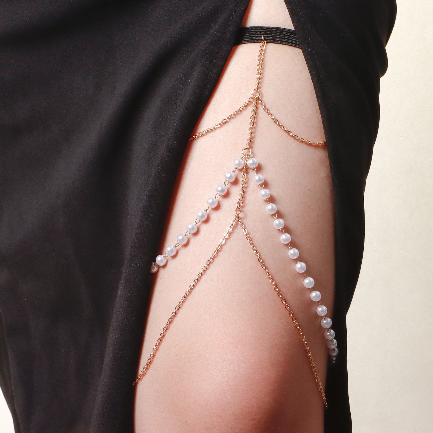 Sexy Beach Body Chain Nightclub Party Multi-layer Pearl Leg Chain