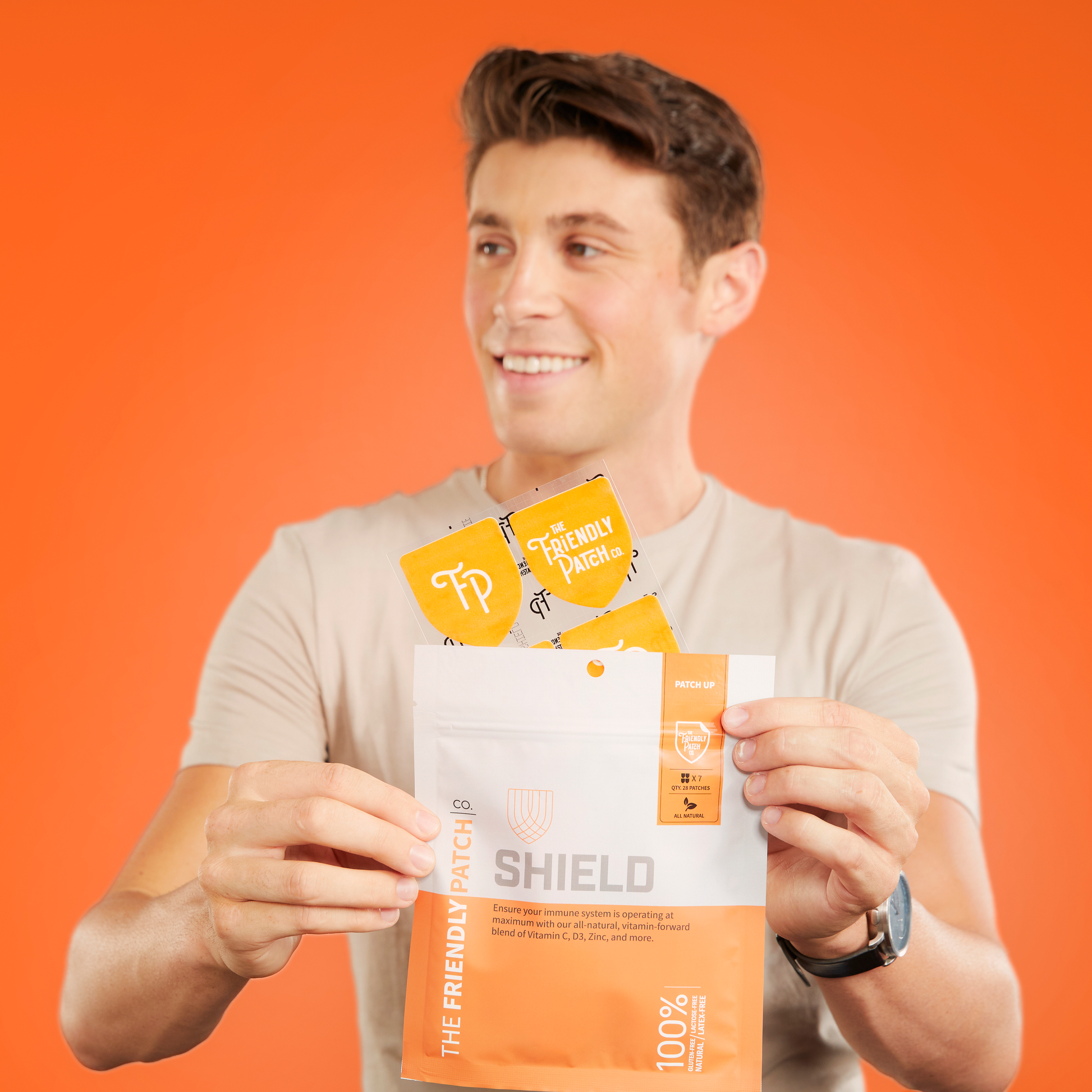 Things that make us feel better: a bowl of soup, the company of a good friend, and a Shield Friendly Patch! This powerful Shield Patch can help you shake off that under-the-weather feeling and return to feeling like your best self. Made with Zinc, C, D3, and more.