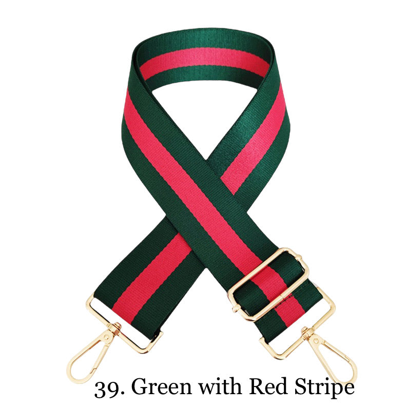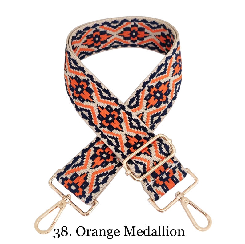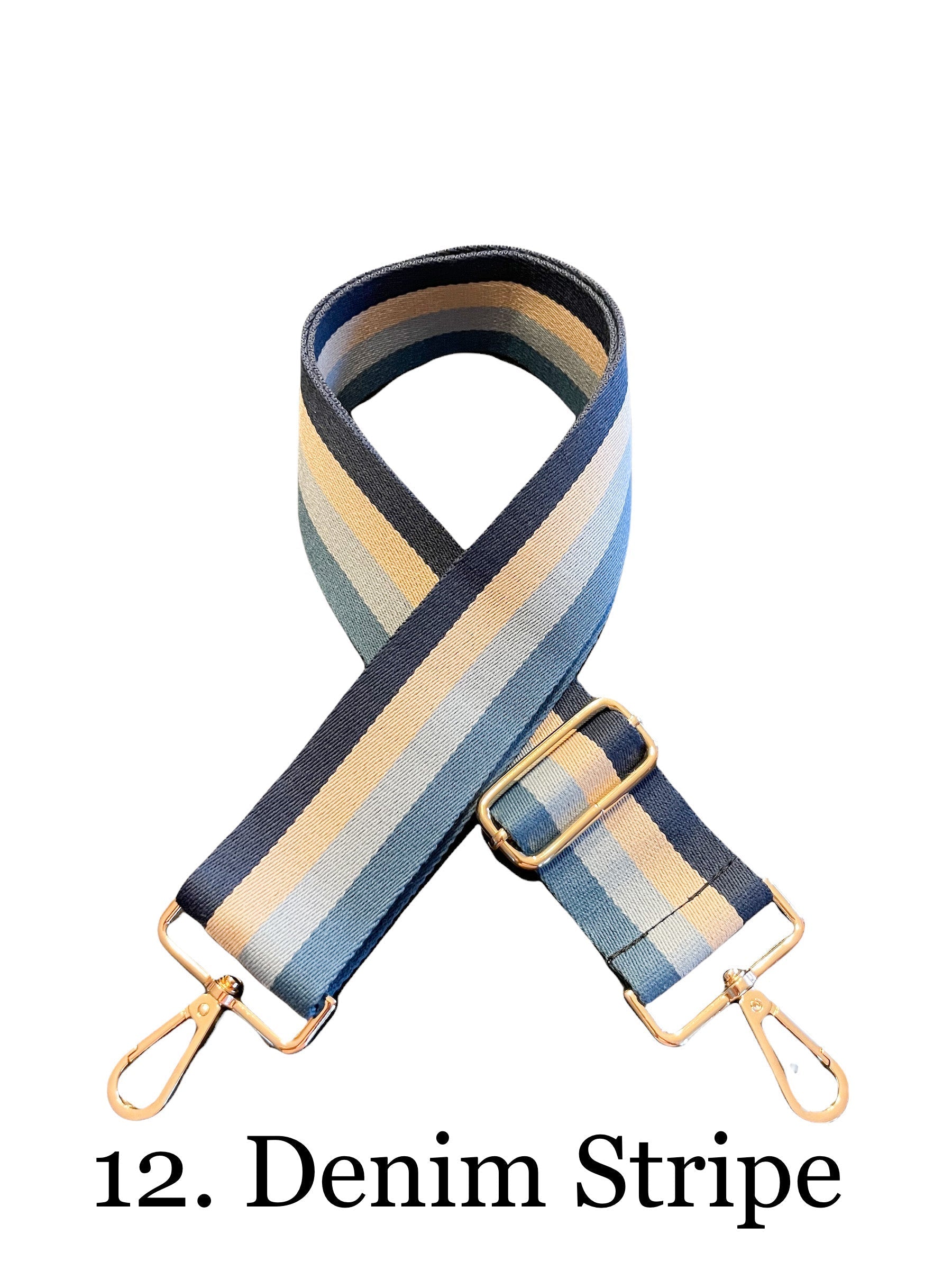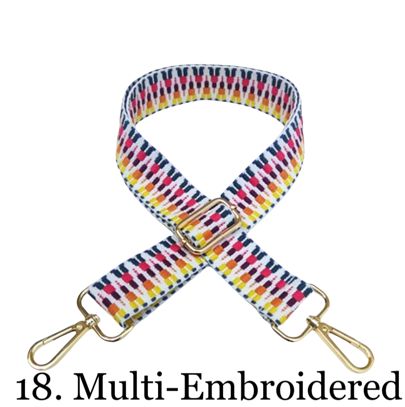 Please note, the photos shown are examples for reference only. The bag does not necessarily come with the strap shown in the photo but you can build that combination from the options. All bags and straps have gold hardware. Dimensions: 13" H x 12" W x 3" D Bag contains two slip pockets and one zippered pocket. Straps - The strap ranges between 30" buckle to buckle at its shortest and 50" at its longest buckle to buckle.