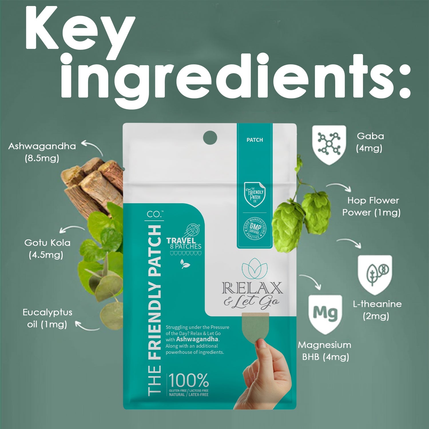 The Zen Calm Patch has new packaging and name change which will be called "Relax & Let go"( Travel Pack - 8 patches ). The Friendly Patch is the perfect way to relax and Let Go after a long day. This patch is formulated with natural ingredients, including Ashwagandha, Gaba, Magnesium BHB, Gotu Kola, L-theanine, and Hop Flower Power. Together, these ingredients work to calm the mind, ease stress, and promote a sense of relaxation.